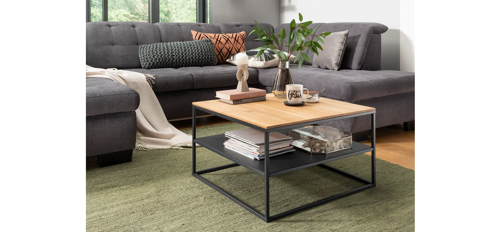 Dieser Couchtisch wird durch edles Wildeichen Massiv Material hervorgehoben. Das Eisengestell in Schwarz sorgt nicht nur für einen stilvollen Blickfang in deinem Wohnzimmer, sondern unterstreicht auch das moderne und doch zeitlose Design des Couchtisches. Der Tisch bietet ausreichenden Platz für deine Lieblingsbücher, Getränke oder einfach schicke Dekoelemente. Der Couchtisch kombiniert Funktionalität mit Ästhetik für dein Zuhause. Ohne Dekoration.