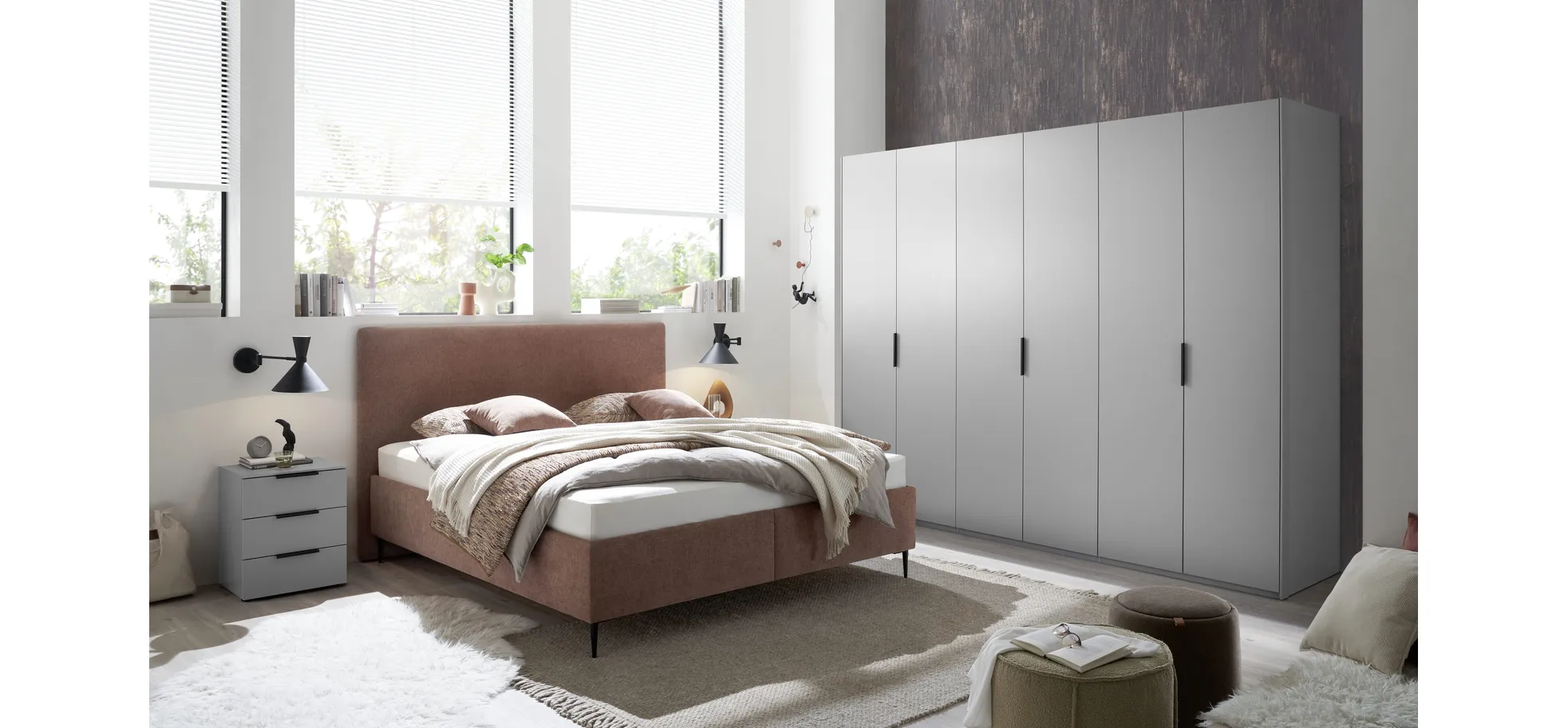 Der Drehtürenschrank EM Lascala aus der Europa Möbel-Collection ist ein elegantes Möbelstück in seidengrau mit ca. 223 cm Höhe und ca. 60 cm Tiefe. Mit seinen sechs Türen bietet er großzügigen Stauraum für Deine Kleidung und Accessoires. Die schwarzen Griffe verleihen dem Schrank einen modernen Touch, während die integrierte Dämpfung der Türen ein sanftes und geräuschloses Schließen ermöglicht. Mit einer Breite von ca. 300 cm fügt sich dieser stilvolle Schrank nahtlos in Dein Zuhause ein und sorgt für eine aufgeräumte und ansprechende Atmosphäre. Ohne Dekoration