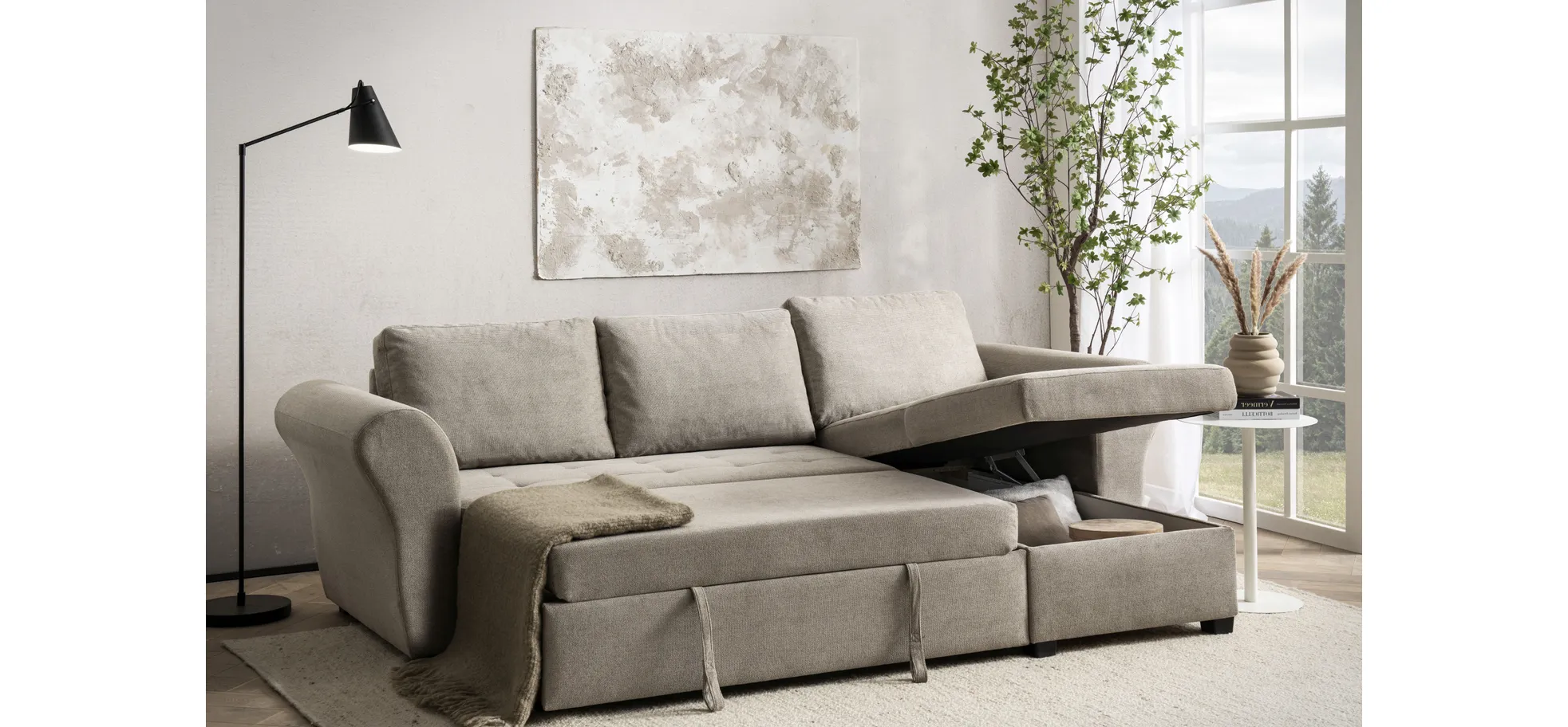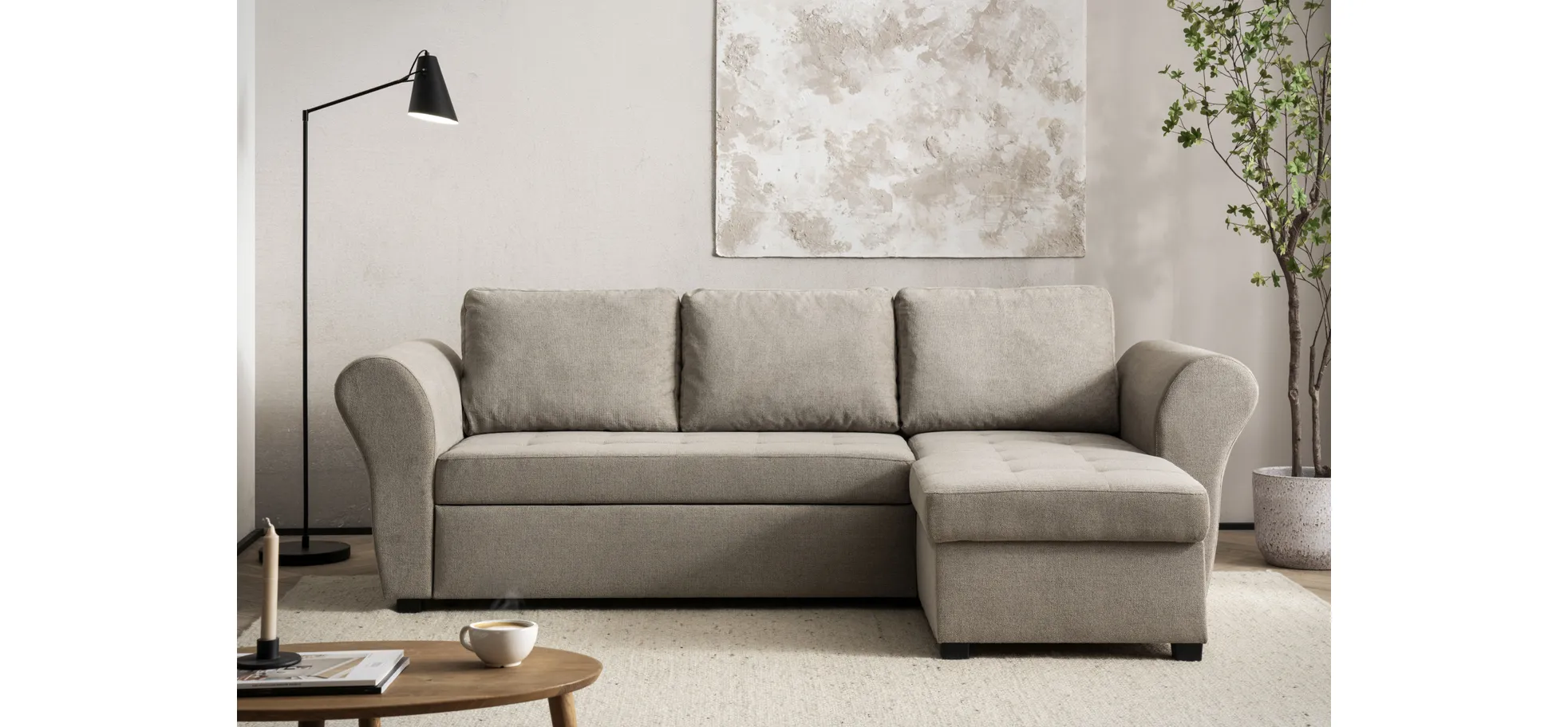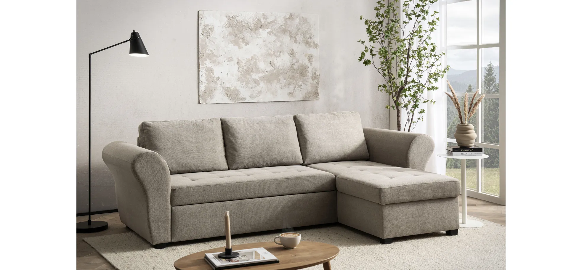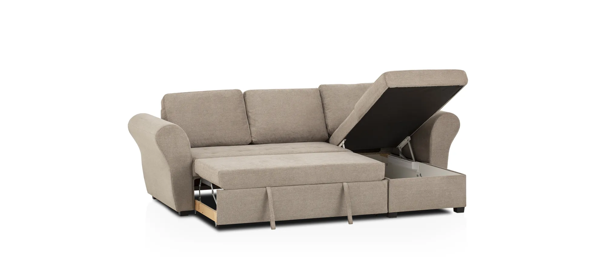 Ecksofa – 2-Sitzer mit Longchair rechts bietet dir ultimativen Komfort dank Stahlwellenfedern und Schaumstoffpolsterung. Der ca. 45 cm hohe Sitz lädt zum Entspannen ein. Die eckigen Beine aus robustem Kunststoff sorgen für Stabilität und einen modernen Look. In elegantem Trüffel-Stoff gehalten, fügt sich das Sofa stilvoll in dein Wohnzimmer ein. Die praktische Schlaffunktion mit integriertem Bettkasten macht es zu einem multifunktionalen Möbelstück, das sich perfekt für Gäste eignet. Ein wahres Highlight für dein Zuhause.