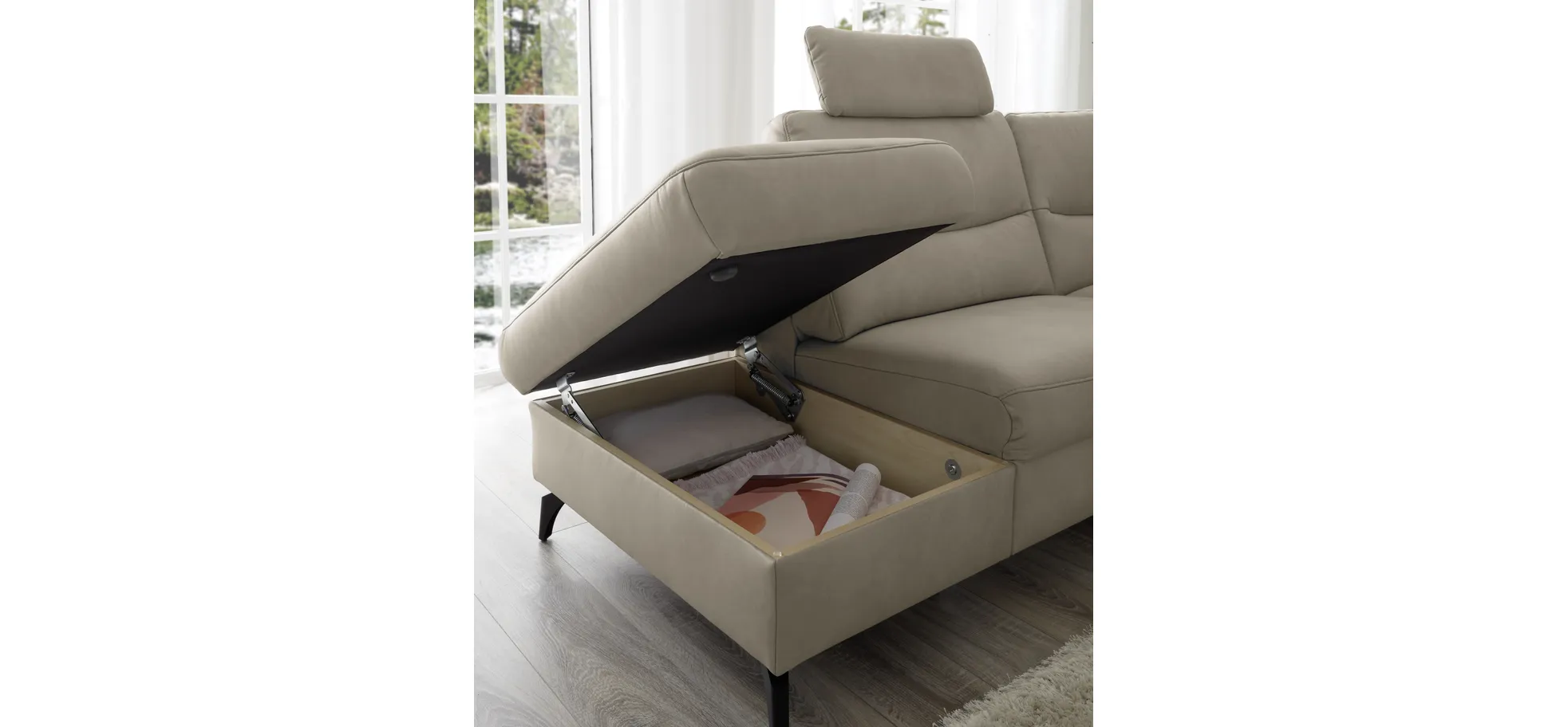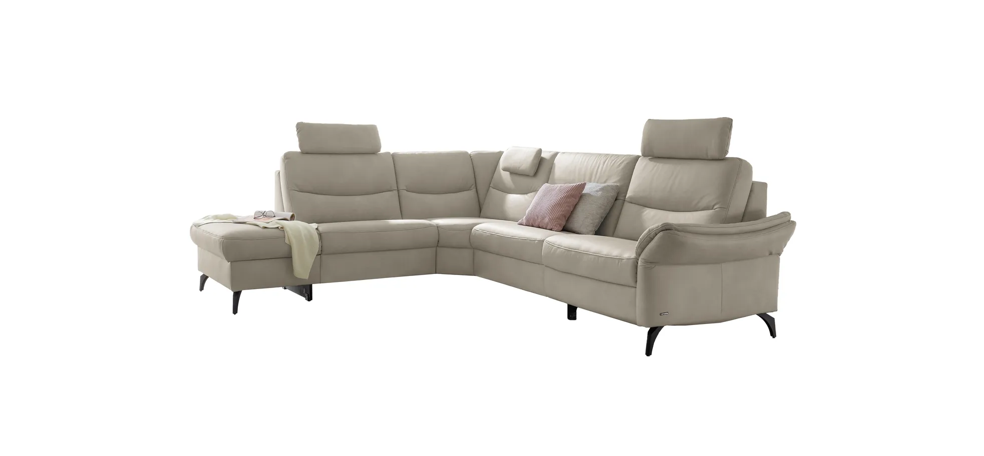 Das Ecksofa EM Amarante aus der Europa Möbel-Collection in elegantem Beige bietet luxuriösen Komfort und Stil für dein Zuhause. Die stabilen Metallfüße in Anthrazit vereinen Robustheit mit modernem Design. Genieße optimalen Sitzkomfort dank des hochwertigen Federkerns und der Kaltschaum-Rückenlehne, während die Sitzhöhe von ca. 49 cm für bequemes Aufstehen sorgt. Die verstellbaren Kopfstützen und Nackenkissen unterstützen eine ergonomische Haltung. EM Amaratne ist perfekt für entspannte Abende und stilbewusste Wohnzimmer. Ohne Zierkissen und Dekoration