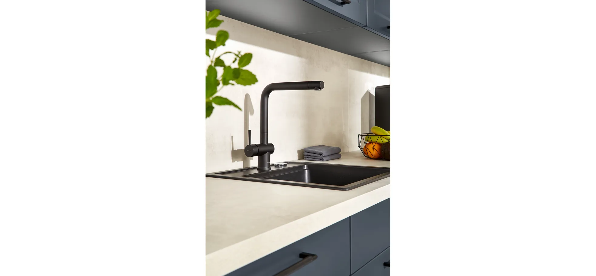 Erlebe die Ästhetik und Funktionalität der L-Küche 37.160 in Fjord Blau. Ihr unverwechselbarer Fjord Blau-Farbton bringt eine frische Brise in deine Küche und setzt ein stilvolles Statement. Die L-Küche 37.160 ist nicht nur ein optisches Highlight, sondern auch ein wahres Raumwunder, das dir bei der Organisation deiner Küchenutensilien hilft.