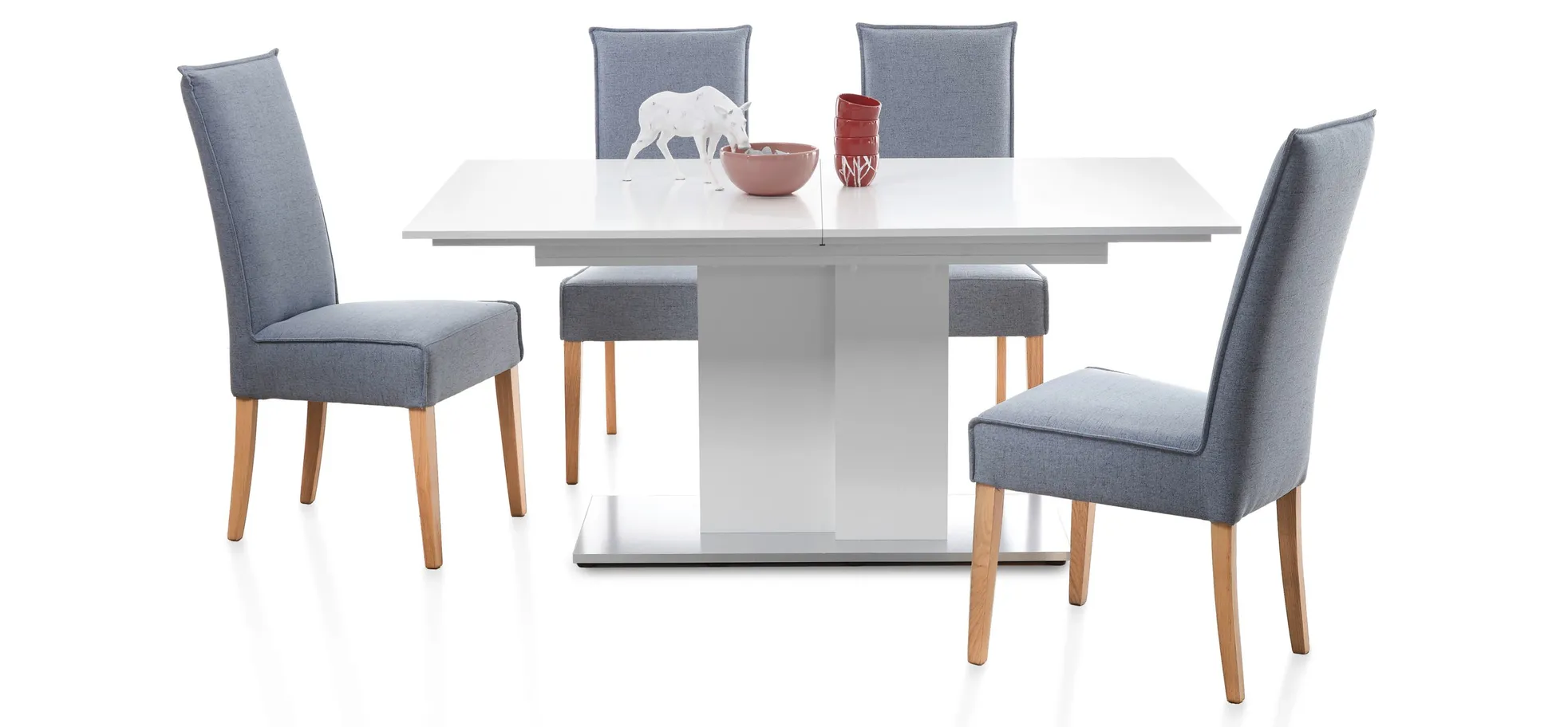 Dieser moderne Polsterstuhl peppt Ihr Esszimmer auf. Darauf nimmt jeder gerne Platz. Egal ob Gäste oder Familie, alle werden sich wohlfühlen. Der Stuhl verbindet stilvolles Äußere mit hoher Bequemlichkeit. Dank der weichen Polsterung und der hohen Rückenlehne sitzt man auf ihm ausgesprochen komfortabel. Der in eisblau gehaltene Bezug verströmt Gemütlichkeit und harmoniert ausgezeichnet mit den massiven Füßen in Eiche. Eine umlaufende Binsennaht gibt den Stuhl einen besonderen Aspekt. Hier macht Sitzen einfach Spaß. Durch die moderne Optik erhält der Stuhl ein sehr ansprechendes Äußeres und lässt sich vielseitig kombinieren.